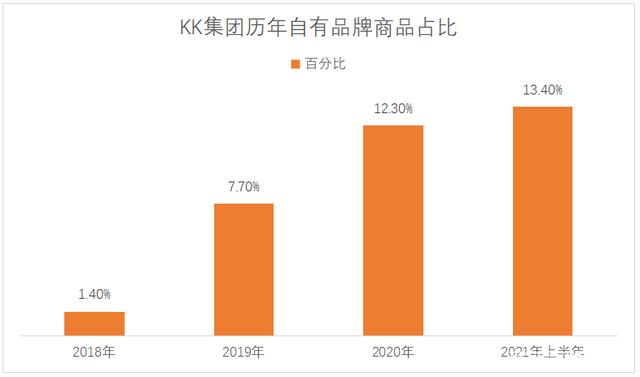 2、自有品牌占比呈上升趨勢(shì):分析師認(rèn)為,KK集團(tuán)毛利率的提升除了門店運(yùn)營(yíng)效率提升、規(guī)模效應(yīng)之外,自有品牌商品占比的提升也是重要因素之一,根據(jù)招股書顯示,自有品牌商品占比從2018年的1.4%已提升至2021年上半年的13.4%,呈逐年上升的明顯趨勢(shì)。分析師表示,自有品牌商品能獲取更高的利潤(rùn),對(duì)毛利率的提升作用起到直接影響。