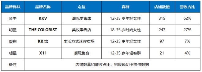 3、著眼年輕人生意,形成有市場(chǎng)戰(zhàn)斗力和財(cái)務(wù)盈利能力的品牌矩陣:KKV+THE COLORIST+X11+KK館。