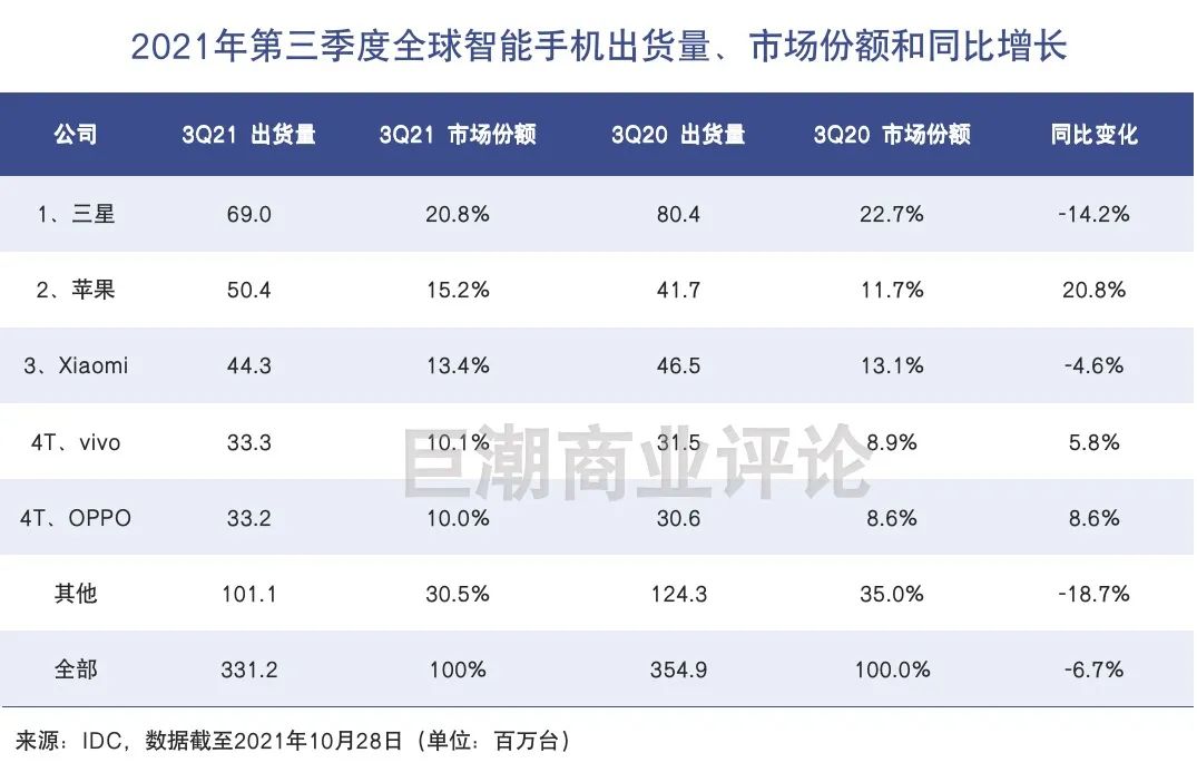 從市場調(diào)研機構(gòu)IDC公布的數(shù)據(jù)來看,小米手機第三季度的全球出貨量表現(xiàn)并不是那么糟糕,下滑4.6%的成績明顯強于老大三星,也強于行業(yè)整體的增速。