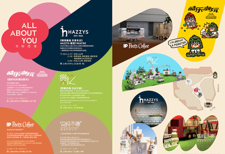 互動活動方面,項目將聯(lián)合酷樂潮玩、皮爺咖啡、雙城市集、樂之、HAZZYS等品牌,推出萌寵音樂劇場、潮玩集市、野奢露營、圣誕市集等。因為接近新年,這些不僅僅是開業(yè)活動,也延續(xù)到圣誕與元旦的活動主題。