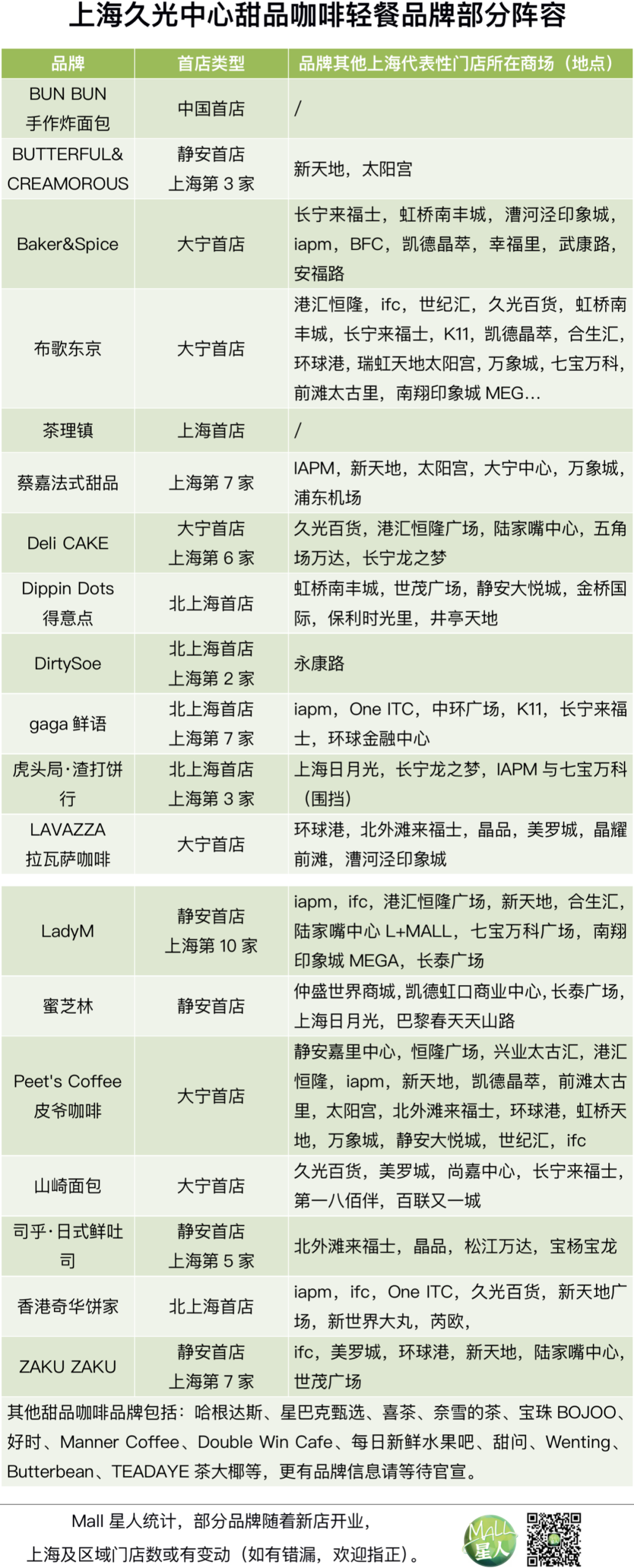 在已官宣的首店品牌中,上海久光中心囊括了上海首店——魚羊野史、紅雀圍、天若榮越、PARK by balabala、前野潮牌LINE FRIENDS,北上海首店——CHANEL美妝、CLARINS、GUERLAIN、niko and…、Harbor House、樂之JSPOT、醉東Oriental House,靜安區(qū)首店Adidas MEGA系列集合店、天比高、NITORI、順電,區(qū)域首店——米其林餐廳添好運、小大董等各大類業(yè)態(tài)的首店與特色門店(各業(yè)態(tài)首店請參見本文所附表格,通過此表可一窺頭部主流品牌上海選址布局的特點)。