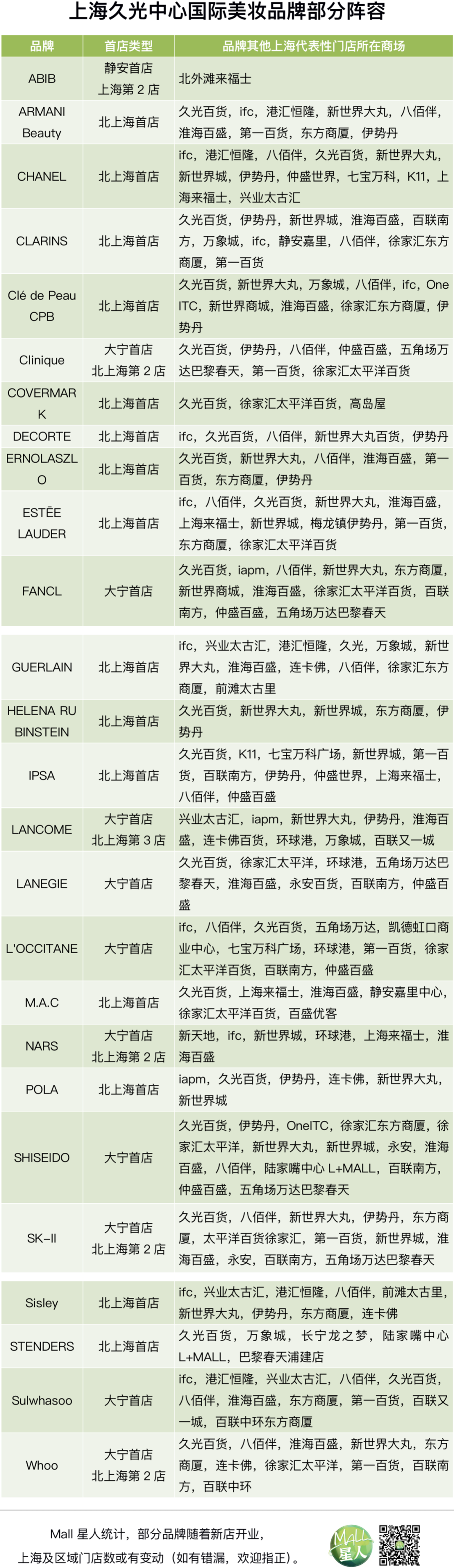 就已曝光的品牌陣容來看,上海久光中心的國際高級化妝品與輕奢與潮流服飾(不含重奢)品牌,是今年所有新場中最齊備的。