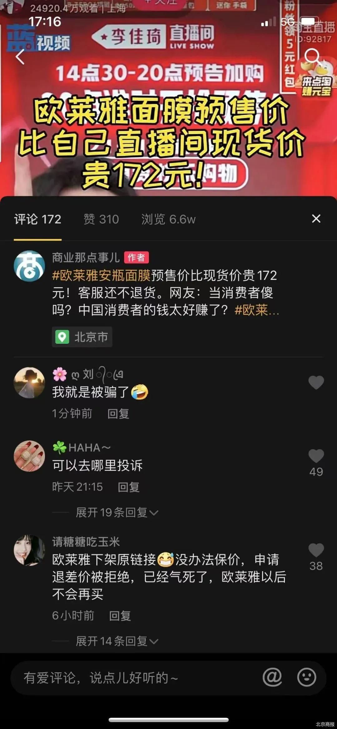 與此同時,眾多網(wǎng)友在相關(guān)視頻、博文評論區(qū)更是“花式”呼叫歐萊雅官方出面回應(yīng)。