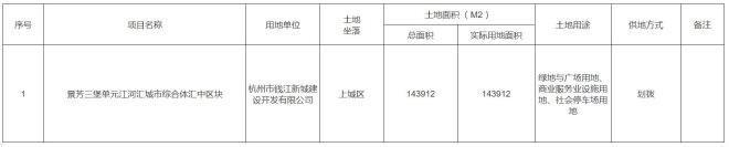 此次公示的匯中地塊由杭州市錢江新城建設(shè)開發(fā)有限公司開發(fā),將用于建設(shè)綠地與廣場(chǎng)用地、商業(yè)服務(wù)業(yè)設(shè)施用地、社會(huì)停車場(chǎng)用地等用途。