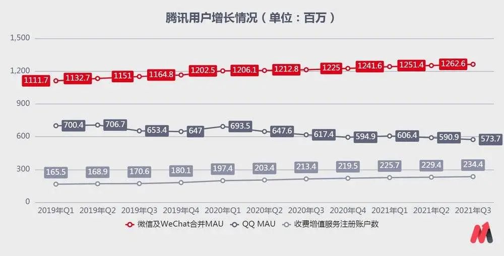 在備受關(guān)注的用戶數(shù)據(jù)上,好的是微信及WeChat的合并月活用戶數(shù)繼續(xù)增長,達(dá)到12.62億,同比增長4.1%;壞的是,QQ的移動(dòng)月活同比下降7.1%至5.73億;兩者相加所得的整體用戶池在下降。