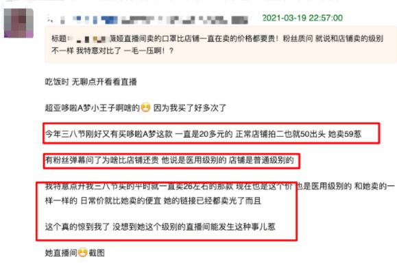 圖:3月份就有網(wǎng)友表示薇婭直播間賣的口罩還貴些