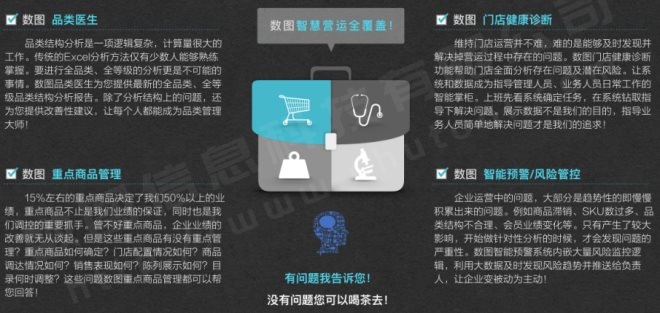 數圖信息與胖東來本次合作主要內容為基于大數據分析的智能化營運管理平臺的應用。涵蓋了智能營運預警、品類醫(yī)生(品類分析)、重點商品管理、多維度異常跟蹤等功能。旨在將管理決策人員,從繁瑣的數據整理、數據分析中解放出來。讓準確的數據監(jiān)控結果,在合適的時間、以合適的方式、傳達給需要的人員手中。是企業(yè)數字化管理、智能化升級的重要實現形式,也是企業(yè)大數據應用的重點領域。