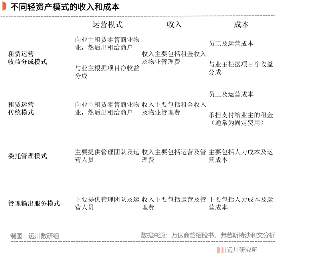 轉(zhuǎn)型之后,萬(wàn)達(dá)商管的工作中心將轉(zhuǎn)移到管理運(yùn)營(yíng)上來(lái),而萬(wàn)達(dá)又提供兩種模式的運(yùn)營(yíng)服務(wù):委托管理模式及租賃運(yùn)營(yíng)模式。