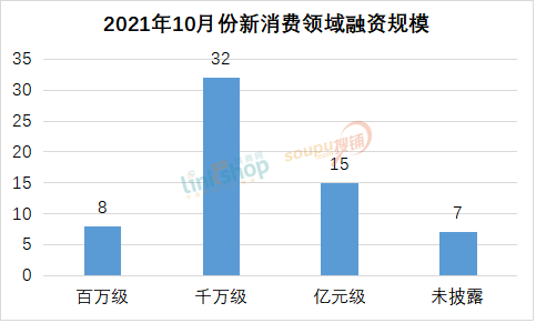 據(jù)聯(lián)商網(wǎng)零售研究中心不完全統(tǒng)計,10月份新消費領(lǐng)域共發(fā)生62起融資事件,融資總金額約28億元人民幣(數(shù)百萬元人民幣融資以100萬元計,數(shù)千萬元人民幣以1000萬元計,數(shù)億元人民幣以1億元計,外幣經(jīng)過換算,未披露融資金額未計入,融資時間以披露時間為主)。