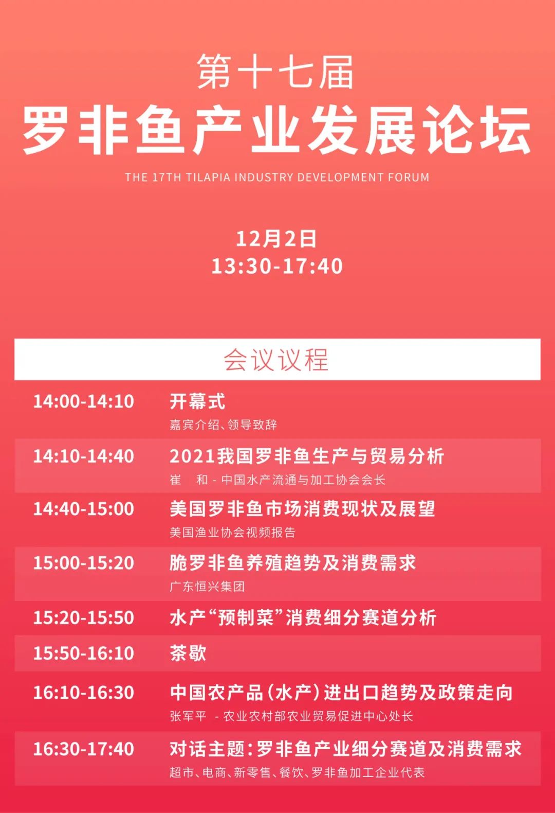 為深入貫徹落實“十四五規(guī)劃”、遵循“以國內大循環(huán)為主體、國內國際雙循環(huán)相互促進的新發(fā)展格局”、穩(wěn)外貿推動國內國際雙循環(huán)相互促進,在鼓勵水產品出口企業(yè)拓展國際市場渠道的同時,全力支持適銷對路的出口水產品拓展國內市場,促進羅非魚品牌升級,讓羅非魚 “游”向更多中國百姓的餐桌。“第十七屆羅非魚產業(yè)發(fā)展論壇”以“拓展新市場,遵循新格局”為主題,邀約眾行業(yè)專業(yè)人士,共探羅非魚產業(yè)的發(fā)展趨勢和方向!