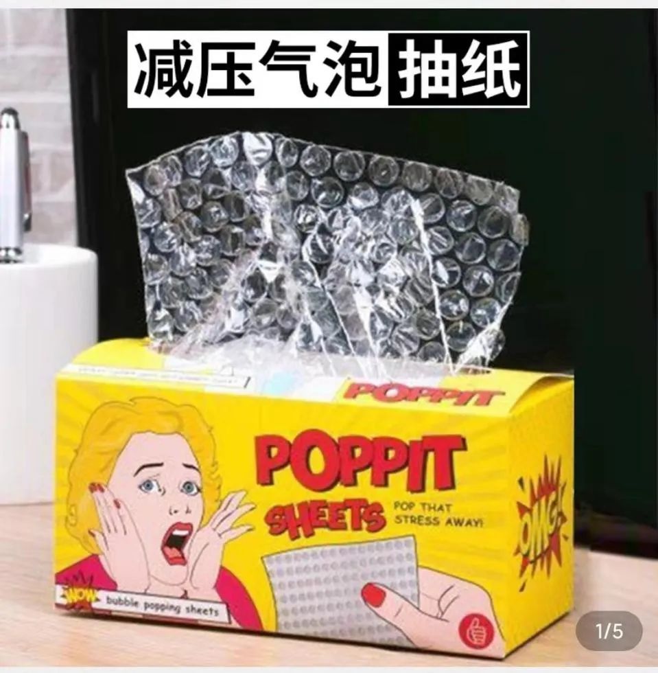 第二類:物理減壓類。這類主要設(shè)計具備指壓等功能的各類玩具,幫助打工人進行壓力緩解。如利用聽覺解壓的氣泡抽紙、利用觸覺解壓的捏捏樂等。在形象設(shè)計上,其會呈現(xiàn)出IP個性化與差異化。大到知名IP“吾皇萬睡”,小到不知名的“巖石人”等。