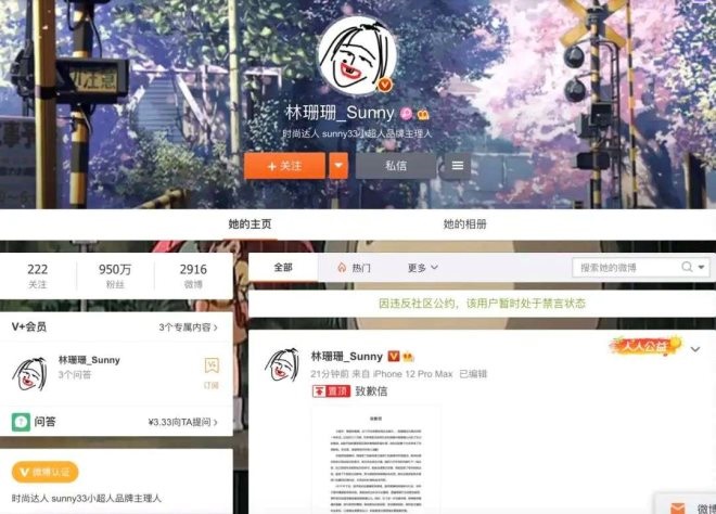雪梨和林珊珊微博均已被禁言 來源 / 微博