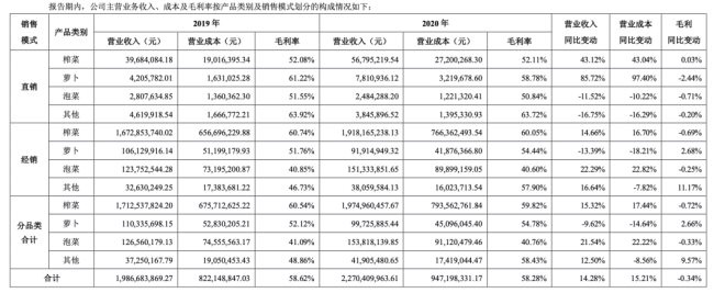 但蘿卜作為公司另一大單品,在2018年、2019年終于收入破億后舉步維艱,2020年跌破億元。