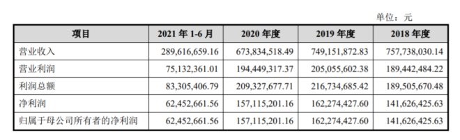 薄利多銷的策略下,2018-2020年及2021年上半年,公司分別實現(xiàn)營業(yè)收入7.56億元、7.49億元、6.74億元及2.89億元;凈利潤分別為1.41億元、1.62億元、1.57億元及0.62億元。