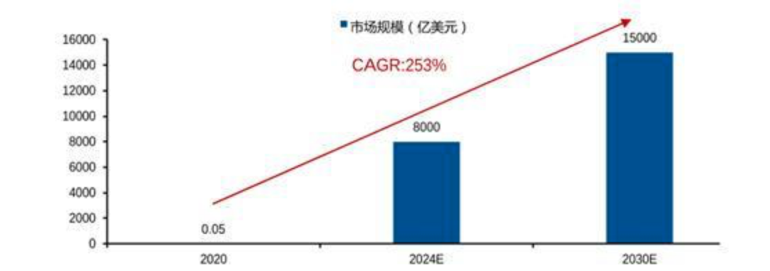 彭博行業(yè)研究預(yù)計(jì),元宇宙的市場(chǎng)規(guī)模是巨大的。將在2024年達(dá)到8000億美元。普華永道預(yù)計(jì)元宇宙相關(guān)經(jīng)濟(jì)將迎來(lái)大幅增長(zhǎng),市場(chǎng)規(guī)模有望從2020年的500萬(wàn)美元增至2030年的15000億美元,2020-2030年的CAGR達(dá)253%。