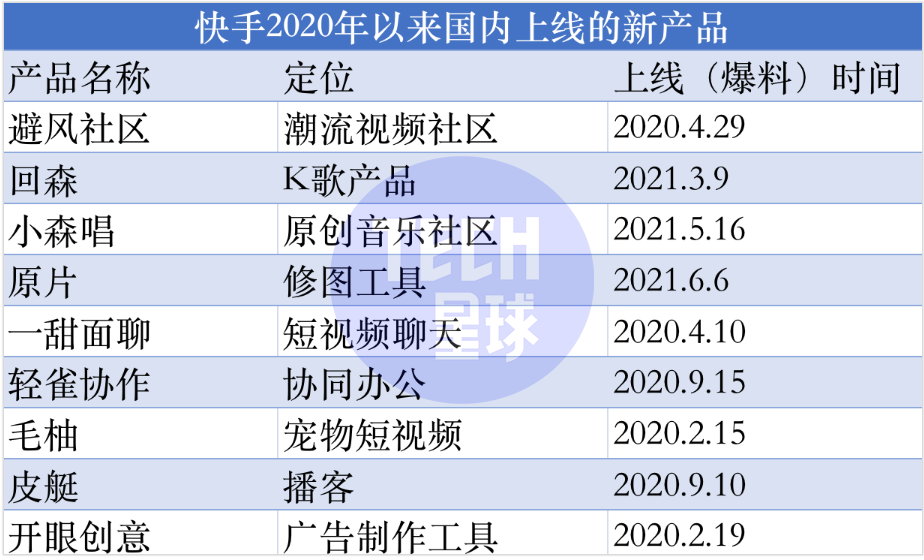 作為與字節(jié)一樣的新晉互聯(lián)網巨頭快手,其新產品則是呈現(xiàn)出每年遞減的趨勢。