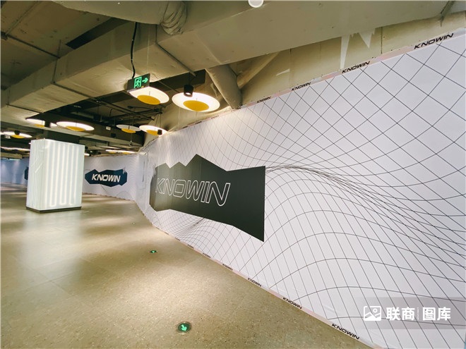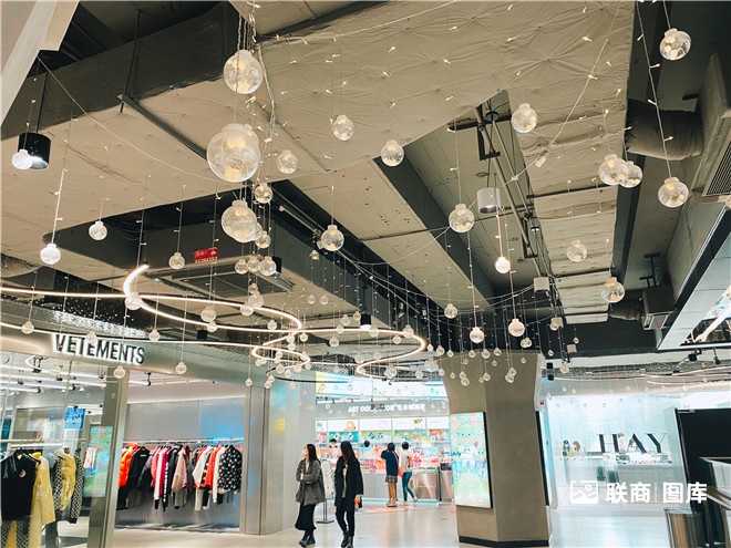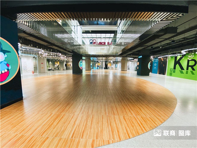 同時,商場內(nèi)也做了一些場景設(shè)計。整體裝修工業(yè)風(fēng),吊頂做了一些年輕化的設(shè)計,中空增加了自流體設(shè)計,更顯潮流,一樓中庭策展了一些商業(yè)活動(目前是封閉裝狀態(tài)),甚至也裝置了一些IP形象。