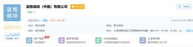《聯(lián)商網(wǎng)》在天眼查檢索發(fā)現(xiàn),藍(lán)瓶咖啡(中國)有限公司于今年8月在上海成立,法定代表人為胡駿,胡駿正是藍(lán)瓶咖啡大中華區(qū)總經(jīng)理。