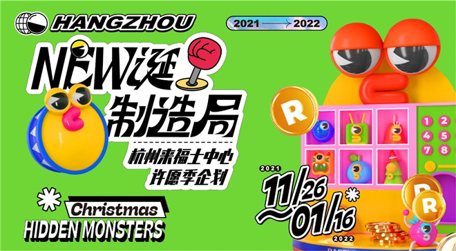 冬日如約而至,隱藏在商場(chǎng)里的圣誕樹彩球,電動(dòng)手扶梯,商場(chǎng)頂燈……都化身為扭蛋機(jī)里的小怪物,對(duì)人類的世界蠢蠢欲動(dòng),它們就是Christmas Hidden Monsters!圣誕的夜幕降臨,它們帶著一整年來不及釋放的熱情,溜到來福士進(jìn)行“交易”,聽說它們出沒的地方都充滿著驚喜,為杭城市民開啟一場(chǎng)奇幻的圣誕PARTY。此次“NEW誕制造局”許愿季企劃,不僅帶來一個(gè)全新的潮酷原創(chuàng)IP,還帶來雙旦慶典、“怪蛋”市集等一系列慶;顒(dòng),拉開2022年的序幕。