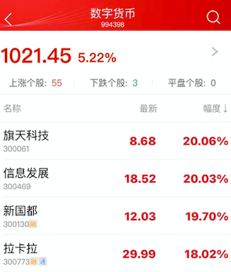 兩條熱搜發(fā)酵后,資本市場(chǎng)立馬反映,數(shù)字貨幣55只概念股上漲,僅3只股票下跌。其中許多都是第三方支付公司,“支付小巨頭”拉卡拉便是其中之一。