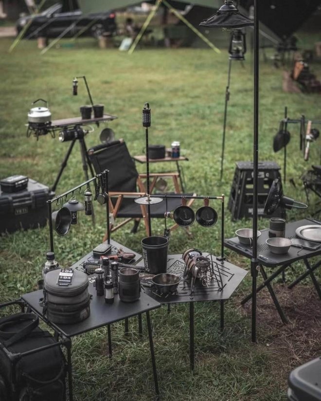 為了達(dá)到“精致”目的,露營(yíng)市場(chǎng)的品類開(kāi)始廣泛與細(xì)化。“買了桌子就得買椅子,買了鍋就得買碗。”同時(shí)為了達(dá)到整體的氛圍感,光是燈也要分照明燈、氛圍燈、暖光燈冷光燈等各種品類。