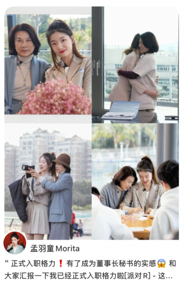 說起她和董明珠的緣分,開始于一檔職場真人秀節(jié)目。憑借優(yōu)秀的綜合素質(zhì)和業(yè)務(wù)能力,孟羽童從幾位候選人中脫穎而出,成為了董明珠的秘書。