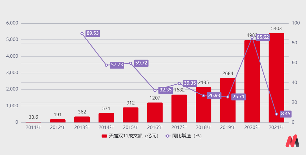 “二選一”的取締使阿里巴巴的核心品類遭受一定的沖擊。截至11月12日零點(diǎn),天貓雙11總交易額定格在5403億元,同比增速為8.45%,創(chuàng)歷史新低,且遠(yuǎn)低于全行業(yè)的12.22%。而京東雙11期間累計(jì)下單金額超過3491億元,同比增速為28.6%,是全行業(yè)的2倍。