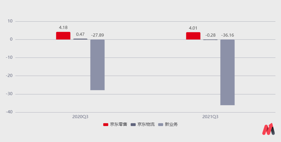 2021年三季度,京東實(shí)現(xiàn)經(jīng)營利潤25.72億元,經(jīng)營利潤率為1.18%,低于去年同期的2.52%,主要是京東在加大京東物流和新業(yè)務(wù)的投入,使其虧損幅度擴(kuò)大。