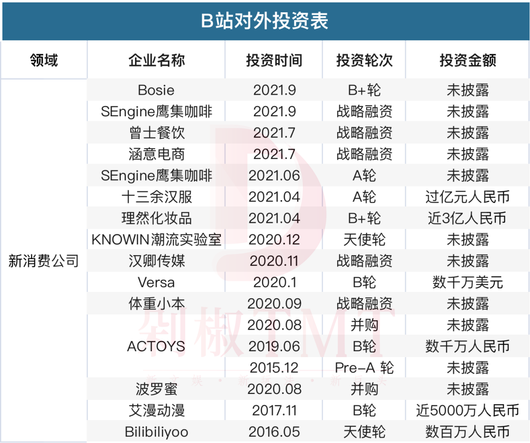 除了騰訊以外,很少有公司像B站一樣熱衷于投資。