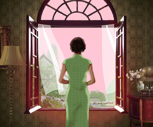 長圖的主角是一個身著綠色旗袍的女子,名叫阿玲。她在自家窗邊涂上口紅后,婀娜地走下樓梯,走到了上世紀(jì)三四十年代的上海街頭。