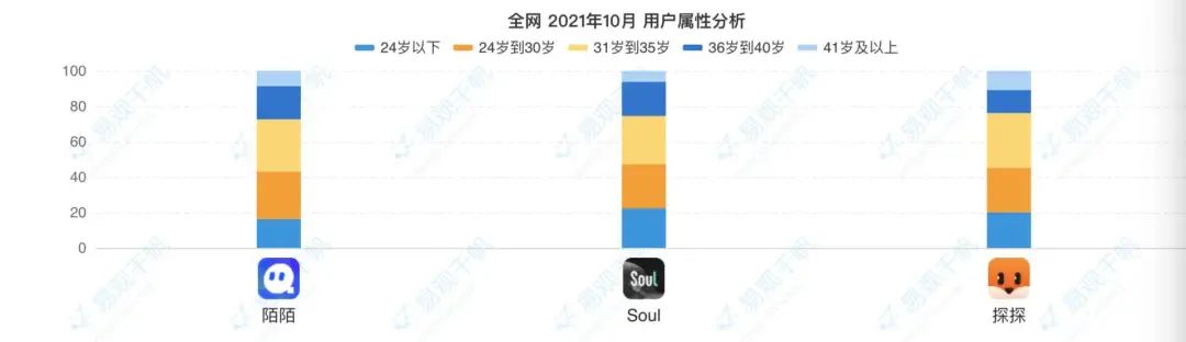 陌陌、Soul、探探用戶年齡層對(duì)比