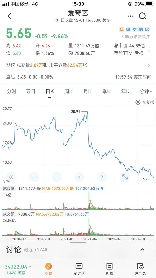 愛奇藝剛剛發(fā)布的三季報顯示,三季度凈虧損同比擴大至17億元。受三季報業(yè)績影響,財報發(fā)布后首個交易日,愛奇藝股價暴跌17%。從今年3月開始,愛奇藝就在資本市場一路被看衰,股價從高峰時期的28.91美元一路下跌至如今的5.65美元,市值縮水超過80%。