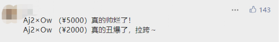 “你永遠(yuǎn)不知道明天和意外哪個(gè)會(huì)先來”,就在網(wǎng)友不絕于耳的“倒閉”的評價(jià)中,這雙鞋在二級(jí)市場的價(jià)格直接原地起飛,售價(jià)直逼五千元大關(guān),交易量也蹭蹭上漲。一位網(wǎng)友評論到“Aj2×Ow (¥2000)真的丑爆了,拉跨~;Aj2×Ow (¥5000)真的帥爛了!”