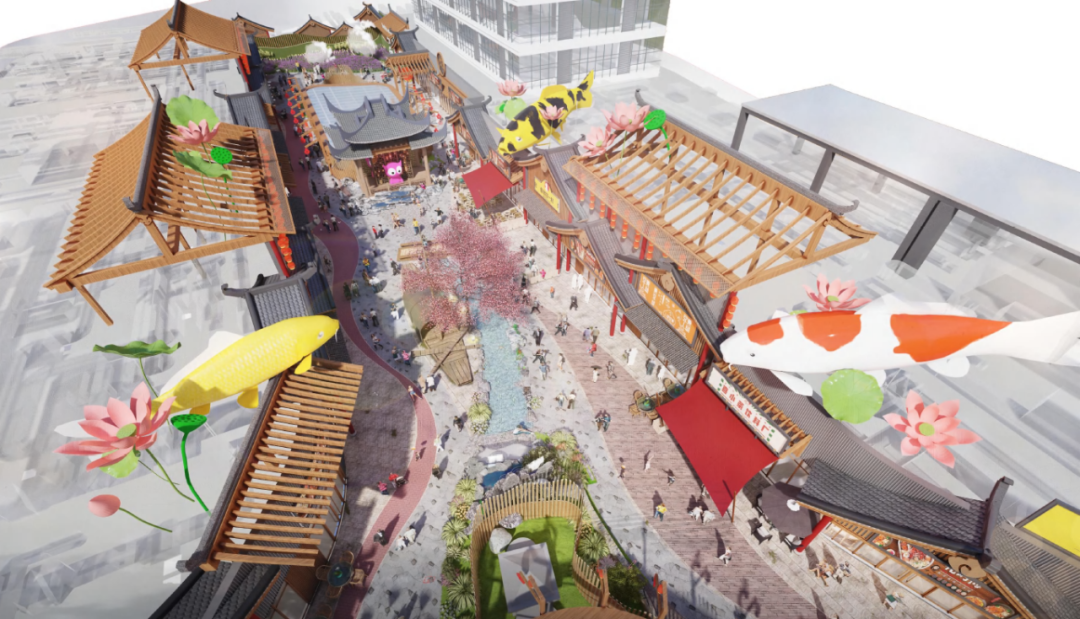 最具特色的是,6樓以古風建筑手法還原國風美景,打造了街區(qū)花園——喵街鯉巷,標志性的三條錦鯉將在頂樓上空“歡快游弋”,勢必將成未來銀泰百貨蕭山店的一大熱門打卡點。