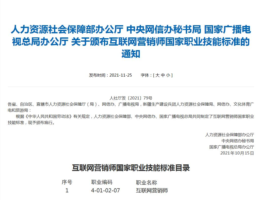 近日,人社部、中央網信辦、國家廣播電視總局共同發(fā)布了互聯網營銷師國家職業(yè)技能標準(下稱《技能標準》)。對互聯網營銷師的工種分類,等級劃分等進行了明確要求,各工種的中高級別須進行培訓、考試后方可進行申報。