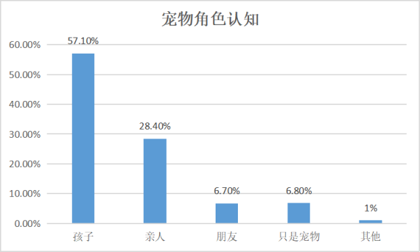 寵物承載著人們的情感寄托。在寵物角色認(rèn)知中,大部分人把寵物當(dāng)成家庭成員來對(duì)待。依據(jù)觀研天下整理的數(shù)據(jù),57.1%的人把寵物視為孩子,28.4%的人視為親人。