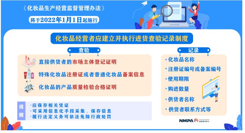 不僅是在執(zhí)法層面上監(jiān)管趨嚴(yán),各地藥監(jiān)局更是加強(qiáng)了對(duì)“建立并執(zhí)行進(jìn)貨查驗(yàn)記錄制度經(jīng)營(yíng)化妝品”的宣貫工作。例如,今年9月8日,江蘇省藥監(jiān)局發(fā)文表示,《化妝品生產(chǎn)經(jīng)營(yíng)監(jiān)督管理辦法》將于2022年1月1日實(shí)行,化妝品經(jīng)營(yíng)者應(yīng)建立并執(zhí)行進(jìn)貨查驗(yàn)記錄制度,查驗(yàn)供貨者的相關(guān)證明,并進(jìn)行信息記錄等。10月9日,西安市未央?yún)^(qū)人民政府網(wǎng)站也發(fā)布了同樣的信息。