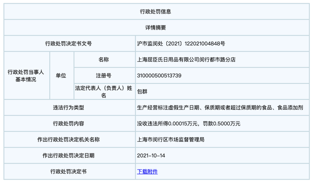 值得一提的是,針對(duì)此事,廣州屈臣氏曾于2021年11月19日向廣州市監(jiān)局遞交不予處罰申請(qǐng),但未被采納。最終,廣州市監(jiān)局對(duì)廣州屈臣氏白云石夏路分店處以2.3萬(wàn)元罰款,責(zé)令其改正“未建立并執(zhí)行進(jìn)貨查驗(yàn)記錄制度”等違法行為,并給予警告。