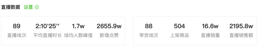 而雙全直播間以高客單價的衣服和珠寶為主,有專門的副播進(jìn)行畫外音講解和商品上架,雙全主要在直播間聊聊“聚會日!。過去30天,她帶貨24場,預(yù)估銷售額371.5萬,但由于大量時間在和粉絲聊天互動,場均人數(shù)峰值能達(dá)到1295。