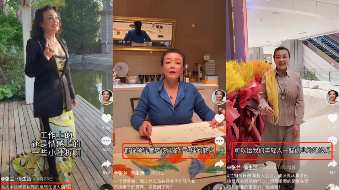 不過,對于張?zhí)m而言,她因為一定程度上丟掉了“成功企業(yè)家”的包袱,反而借短視頻平臺重塑了人設(shè)。