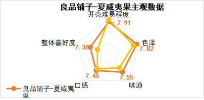 3款品牌夏威夷果里面都配有開殼器,在開殼器幫助下,測評官普遍認(rèn)為夏威夷果比較容易開殼,松脆度不相上下,但在味道、色澤以及總體喜好度上,良品鋪子夏威夷果要比平均分高,表現(xiàn)更好。