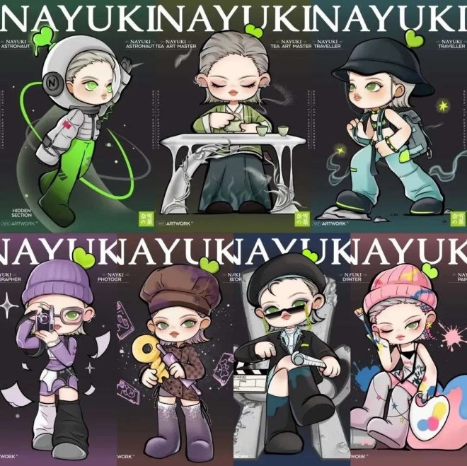 第三,也是最引人關注,最具創(chuàng)新性的嘗試,圍繞「NAYUKI」這一IP,奈雪推出線上NFT數(shù)字藝術(shù)品 ,含隱藏款在內(nèi)共7款,全球限量發(fā)行300份,只在線上以盲盒形式發(fā)售,不制作實物。