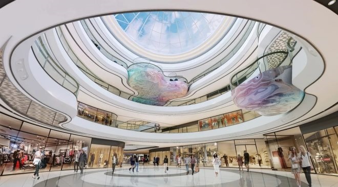 據(jù)悉,項目體量約22萬㎡,商業(yè)面積約8.08萬㎡,購物中心地下2層、地上4層,體驗業(yè)態(tài)占比高達80%,強調(diào)社交屬性。項目引入超162家品牌,涵蓋大玩家、萬達影城等9家主次力店。其他如星巴克、必勝客、肯德基、麥當(dāng)勞、奈雪的茶、屈臣氏、波司登、小菜園、左庭右院等品牌均已入駐。