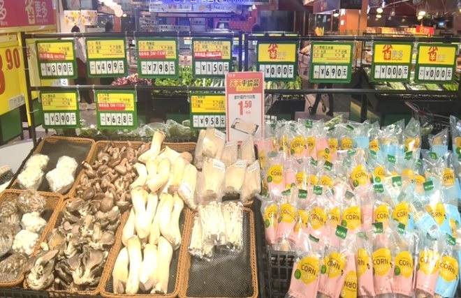 家樂福全國各區(qū)域每周推出不同品類的“天天平價菜”,部分菜品低至1元左右