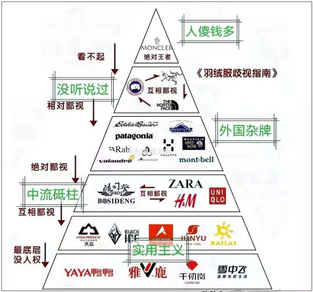 雖說這份羽絨服鄙視指南戲謔成分居多,但在一定程度上,還是反映了主流消費者對于羽絨服品牌的認知。