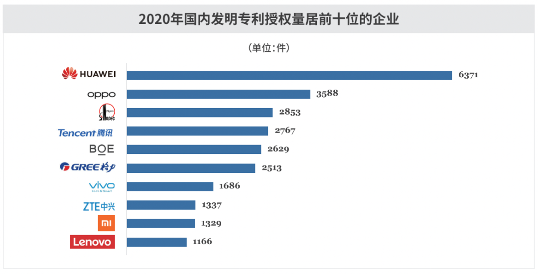 根據(jù)《2020年國家知識產(chǎn)權(quán)局年報》,小米首次進(jìn)入了國內(nèi)發(fā)明專利授權(quán)量榜單的前十名,不過主要競爭對手華為、OPPO、vivo都排在小米前面。而國外在華發(fā)明專利授權(quán)量的榜單中,高通從2013年到2020年始終位居前三,其中有四年位列第一。