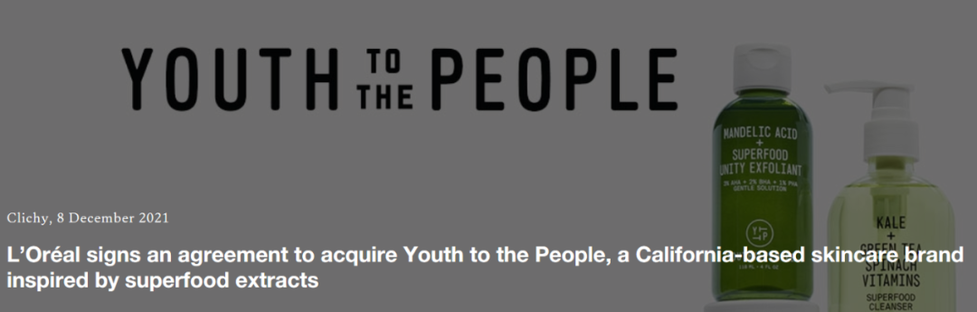12月8日,歐萊雅官網(wǎng)發(fā)布消息稱收購了總部位于美國加州的護(hù)膚品品牌Youth to the People(簡稱YTTP)。