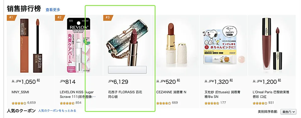 再如花西子,去年3月才正式登陸日本亞馬遜,但卻打造成了爆款產(chǎn)品。在亞馬遜上架后,花西子的“同心鎖口紅”上線首日便進(jìn)入了亞馬遜口紅銷(xiāo)售榜前三名。