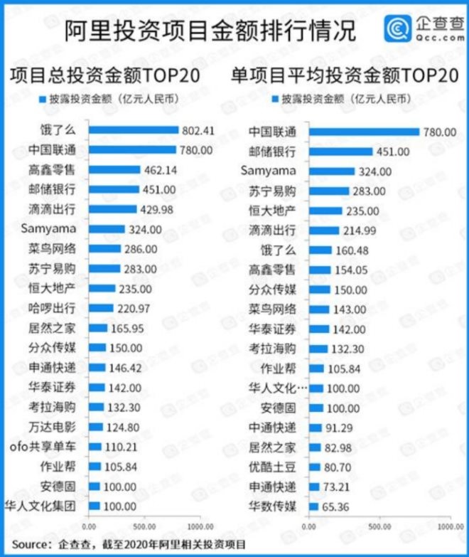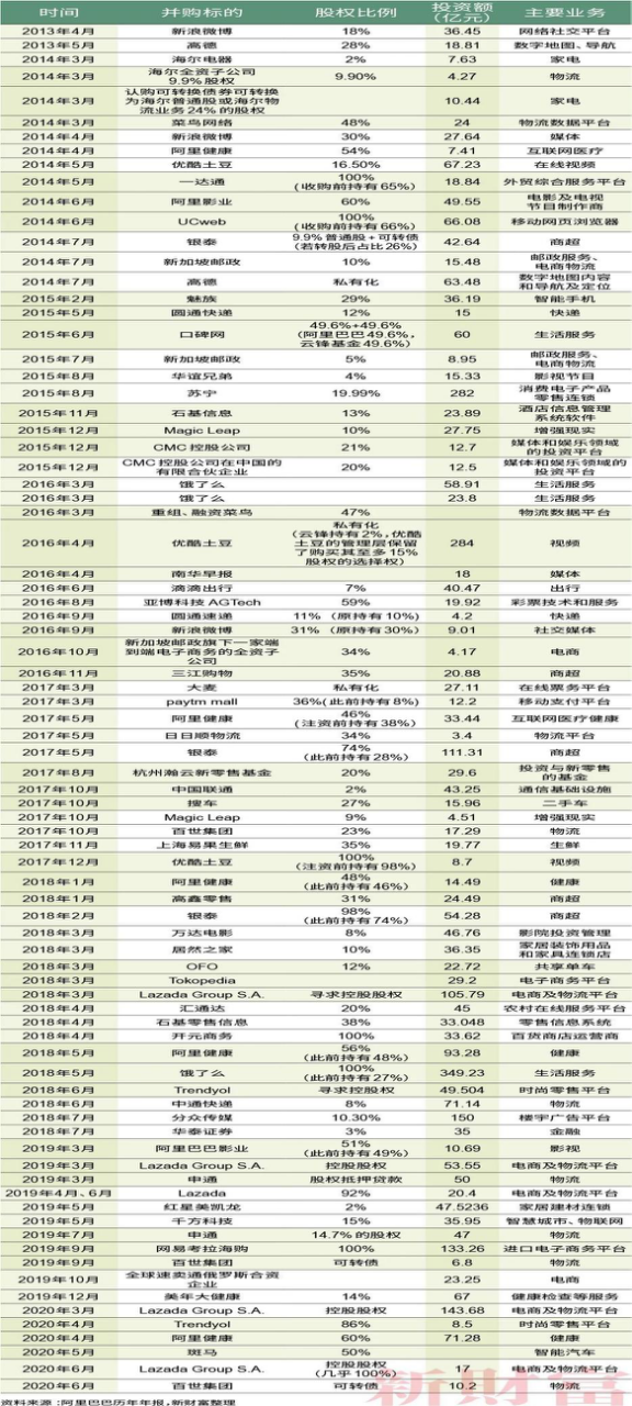 阿里巴巴2014-2020年重大投資事項(xiàng)一覽: