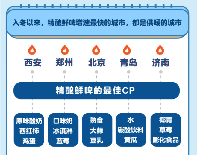 低溫冷藏的盒馬精釀鮮啤,是夏季解暑的標(biāo)配,入冬后一般是銷(xiāo)售低谷。但在北方城市,鮮啤卻逆著變冷的氣溫迎來(lái)銷(xiāo)售上漲,真相讓南方網(wǎng)友羨慕到流眼淚:供暖之后的盒區(qū)房,跟冰爽的鮮啤太搭了。